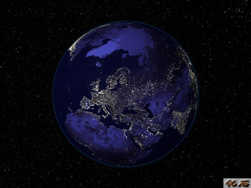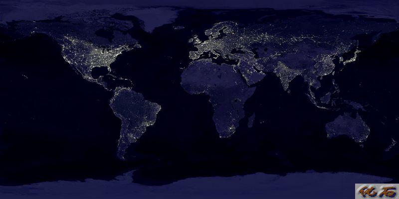 这是一张由卫星图片处理而成的全世界夜晚灯光景色图片。从中我们可以看出,城市越大灯光越亮,城市越多灯光越密。