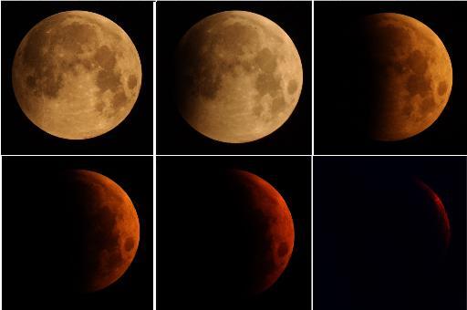 格林威治时间2003年5月16日1时48分钟到2时54分钟在希腊雅典上空看到的月食景象