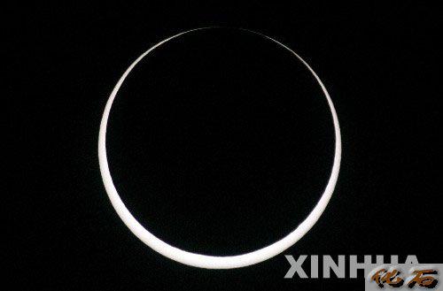 这是10月3日西班牙首都马德里拍摄到的日环食食甚前一刻的景象,由于月球视半径小于太阳视半径,因此月亮只遮挡住日面中心部分并在其周围留下一个美丽的光环。当天,在西南欧和北非的部分地区均可以观看到日环食这一天象奇观。