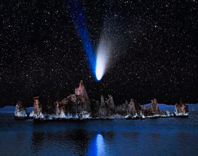 美国加州莫诺湖凝灰岩地层上方的波普彗星。