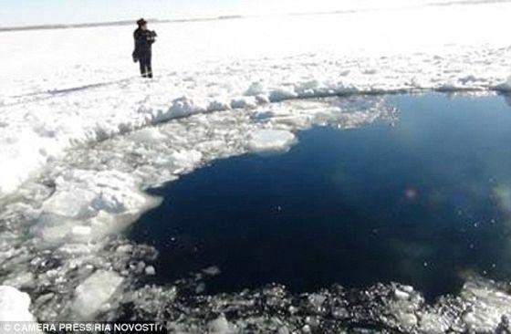 俄罗斯科学家正在一个冰封湖收集陨石碎片