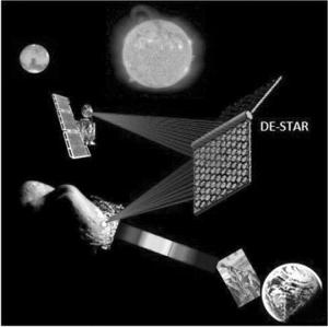 这个全名叫做“探测和击毁小行星单向太阳能相控阵”(DE-STAR)的人造天体系统基本原理是:利用太阳能构建一个巨大的激光束相控阵,如果小行星来访,它可以及时锁定而且予以“烧毁”。据报道,该团队目前正在准备方案书,以提交给同行审查。