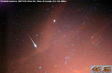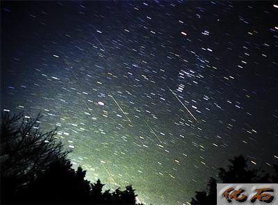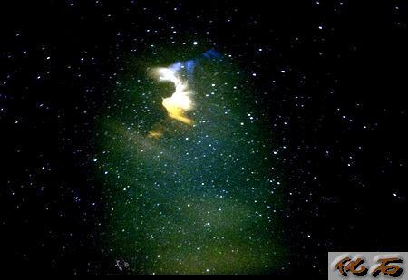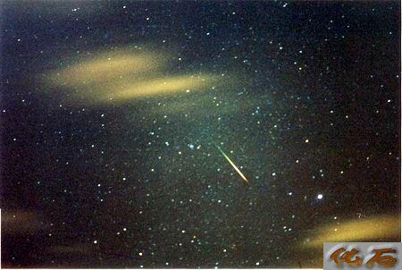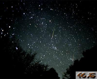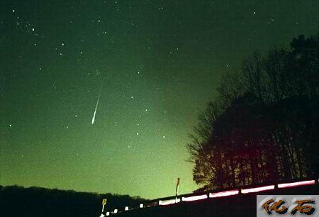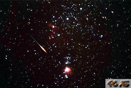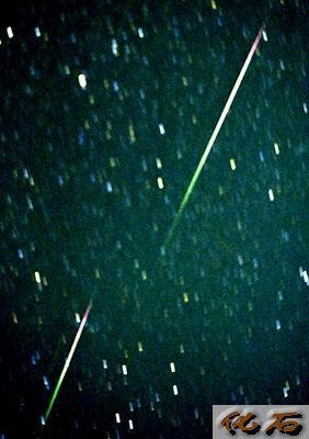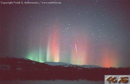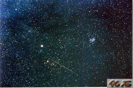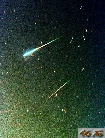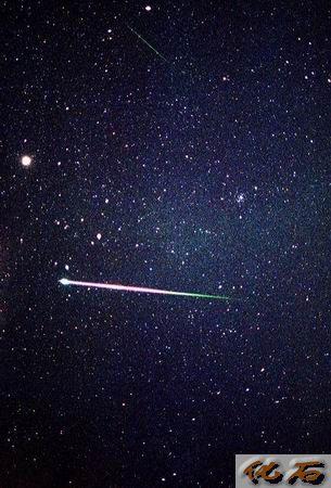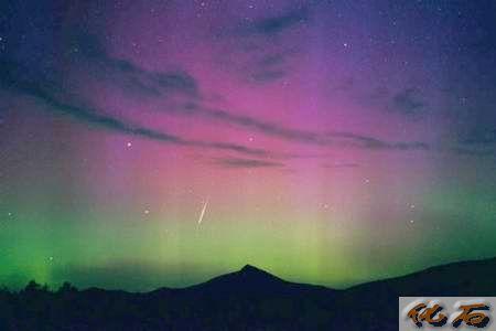 图为2000年8月12日拍摄到的北极光中的英仙座流星