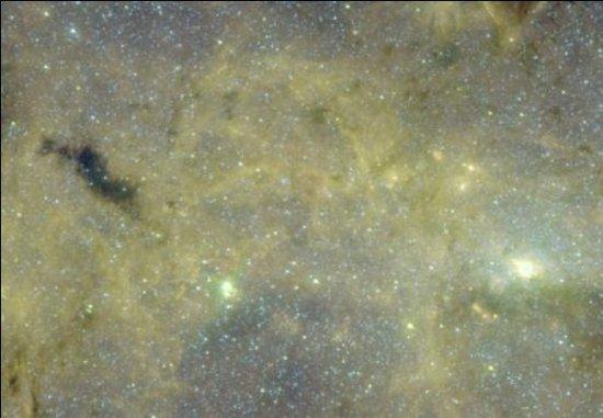 左边黑色区域为神秘“浮云”位置,右边亮点为银河系中央附近区域