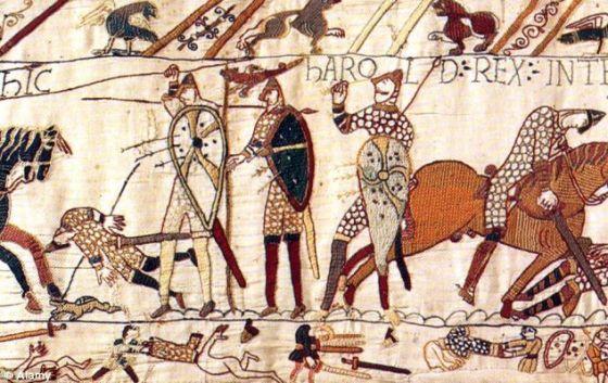 巴约挂毯里的哈雷彗星的特征以及黑斯廷斯战役,巴约挂毯是为纪念1066年诺曼底人入侵英格兰编织的
