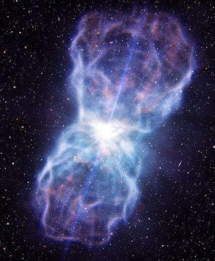 艺术示意图:类星体SDSS J1106 1939附近,大量物质被向外抛出