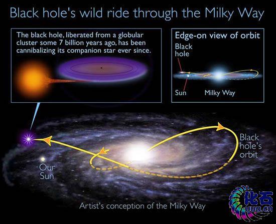 一篇演示“甚长基线干涉测量”潜力的研究论文,报告了对银 河系晕轮中一个黑洞的空间速度的确定。在已知的12个星际物质黑洞中,只有少数 几个位于我们银河系平面以外。这些黑洞可能是因一次超新星爆炸被“踢出”银河 系的,也可能是在银河系生命早期形成的巨型恒星的残留物。科学家计算出的黑洞 XTE J1118+480的轨道基本上排除了超新星“踢出”模型,说明它是银河系老晕轮的 一部分。有关所涉及的一些假想过程的动画可在以下网址看到:www.iafe.uba.ar/astronomia/ FM/mirabel.html