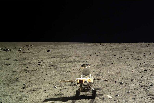 在没有阳光的夜晚,月球表面平均温度可低至零下180摄氏度。图为中国第一辆月球车“玉兔”号在月球上。
