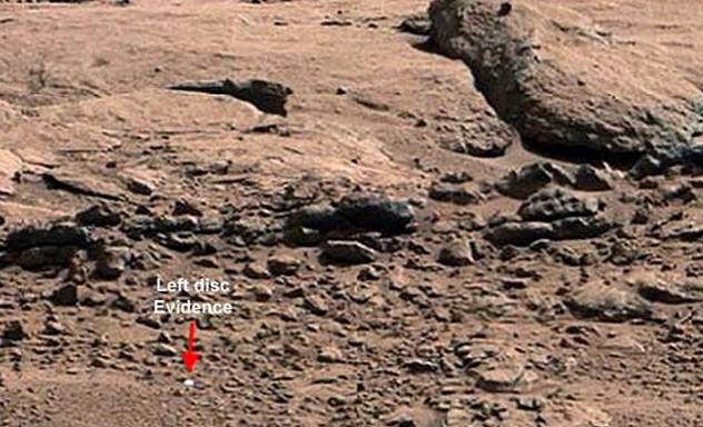 在这个器物旁边另有一颗宝石——距“碗”有些距离。在它的表面上有一个类似滑轮或者圆盘形状的东西。这个仍然可以从美国航空航天局的官方网站上或者在互动全景上找到图片。这个东西看起来像是金属的,而且好像生锈了,轮圈的一侧弯曲了。