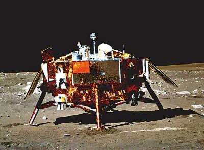 图为嫦娥三号着陆器及器载五星红旗图片。国防科工局供图