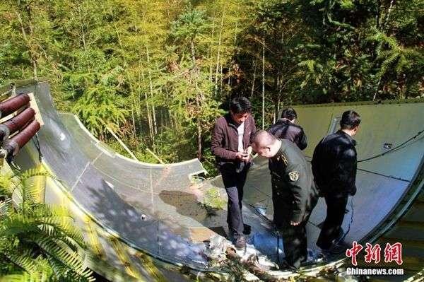 随后杨芬村民兵应急分队便前往搜寻,最终分别在距离村民房子150米左右的竹松林山坡上和洋溪村海拔1100多米高的牛肩山顶各找到一块整流罩残骸。