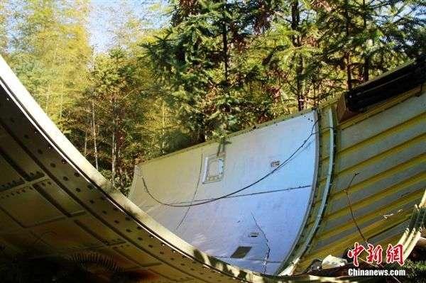 左安镇杨芬村村民刘冬凤描述:“大概是在凌晨听到一声巨响,就像打雷一样,噼里啪啦的声音。白天打柴的时候就发现了(整流罩),马上打电话给村里。”