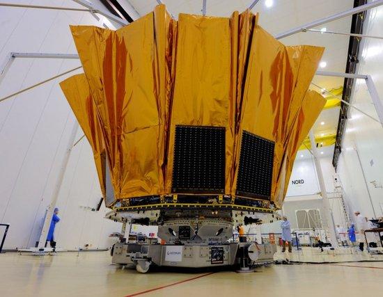 据国外媒体报道,欧洲空间局的“盖尔”探测器将在2013年11月中下旬发射,科学家目前已经准备好各项检查工作,该探测器将以前所未有的观测精度对宇宙中大约10亿个天体进行观测,并绘制出3D时空图像。探测器上搭载了10亿像素的超级相机,科学家可以通过该设备对宇宙天体进行测量,比如通过恒星的光度确定距离,并在此基础上绘制宇宙三维地图。目前科学家已经为“盖尔”探测器穿上了一件外套,这是一张巨大的“金箔”,用于保护探测器极为敏感的传感器。