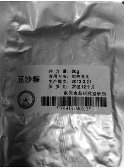 右图:神十所携带的豆沙粽包装袋。视频截图