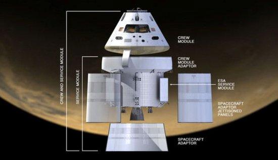 猎户座多用途宇宙飞船与其服务模块示意图