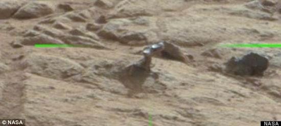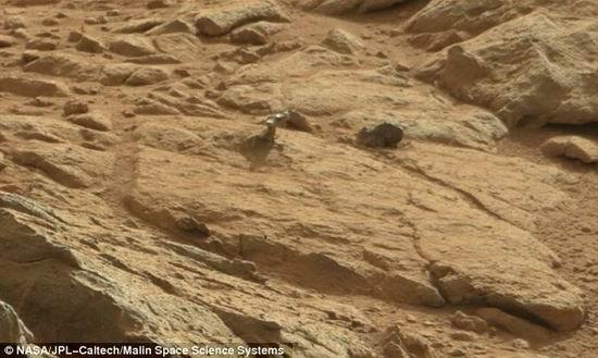 近期好奇号拍摄的火星表面光泽岩石就是一个恰当的例子,一些人猜测这块神秘岩石非常类似于车门手柄,发动机罩装饰物,或者其它类型的金属物体。