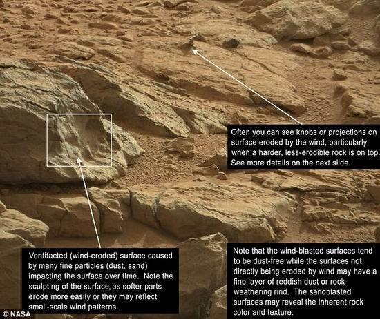 华盛顿大学的罗纳德-斯雷藤是好奇号科学研究小组同事,他指出,这个神秘物体非常引人注意,是风流和其它自然元素对不同岩石类型产生的侵蚀作用。
