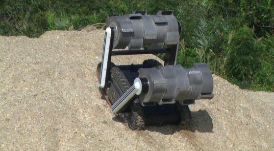 RASSOR机器人的外观确实非常独到,看上去就像是一辆小型迷你坦克,只不过在两边各安装了一台手提鼓。但正是这个手提鼓形的设计是整个项目的亮点所在,是其中最具创新性的地方。由于它们被置于可以活动的机械臂之上,它们几乎就可以像手臂一般自由活动,从而确保机器人可以安全越过障碍甚至可以爬山。
