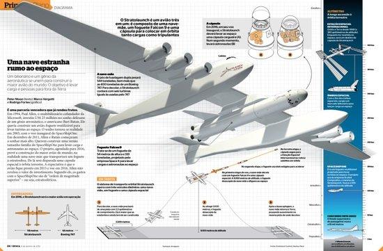 计划中建造的飞行器是一种巨大的空中发射系统,在早先设想的原型中采用了太空探索技术公司的火箭系统,可将6,100千克的重量送入近地轨道,或者将2,300千克的重量送入地球同步轨道。位于加州的莫哈韦沙漠将是这型超级空天发射系统的测试场所,图中显示的庞大母舰翼展可达117米,起飞重量为222吨,发射载具前航程为2400公里,位于亚拉巴马州亨茨维尔正在建设相关的附属集成系统。