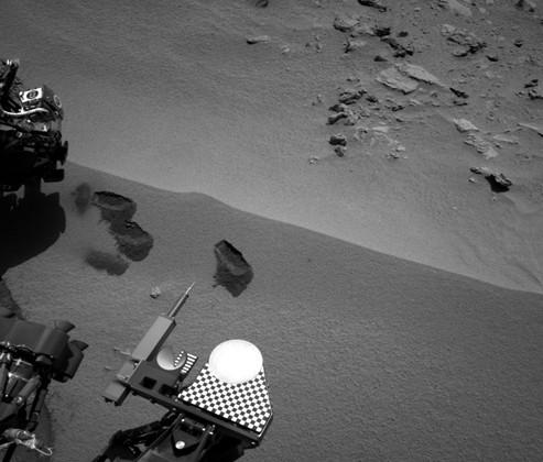 “好奇”号使用它庞大的机械臂向自带的火星样本分析仪(SAM)内送入了一小撮土壤样本,这台分析仪可以检测到样本中含碳的有机化合物的存在。由于碳元素是生命存在的基础,因此这项看似平常的任务可能会帮助我们确定火星是否曾经有支持微生物存在的条件。