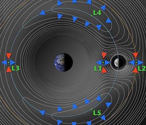 据国外媒体报道,美国宇航局计划在地球和月球的拉格朗日点(地-月L2)上建设空间站。地-月L2处于地球和月球连线的延长线上,距离月球65000公里。由于处于该点的航天器还要受到太阳引力的干扰,实际运行轨迹非常复杂,形成了围绕地-月L2的晕轨道(halo orbit)。