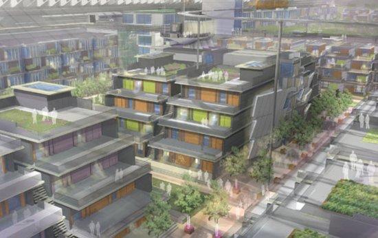 在相互连接结构的圆环形宇宙飞船中,沿着转动中心轴向的为零重力中心,每个连接结构可包括住宅、农业设施、居民居住以及空旷的空间,这样的宇宙飞船内部概念将是未来设计的方向。为了更大程度上达到圆环形宇宙飞船的设计灵活性,可采用模块化的理念,方便进行长期扩展功能,以不断增加宇宙飞船的容量,有效地利用宇宙飞船的空间。通过模块的设计,可以将飞船内部建筑特色和能量布局区别,一系列的半圆形架桥连接着这个居住地,覆盖长达几公里的区域。