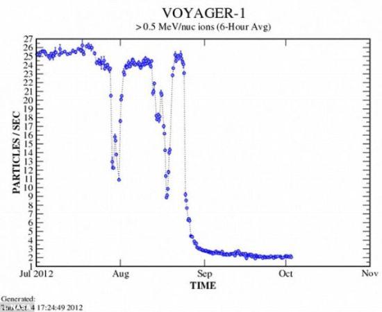 这张图表显示撞上旅行者1号的银河宇宙射线在不断增多