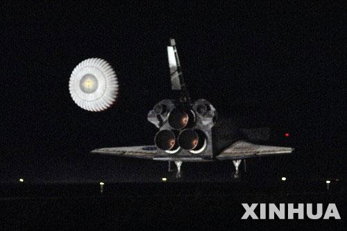 美国东部时间21日6时21分,“阿特兰蒂斯”号航天飞机在美国佛罗里达州肯尼迪航天中心安全着陆。 新华社/路透