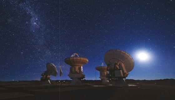 为了捕捉到那些1毫米波,天文学家需要跋山涉水。大气中的水蒸气会阻碍1毫米波的通过,因此高频射电望远镜都设在大气干燥而稀薄的位置(比如莫纳克亚火山),这里有利于1毫米波的顺利通过。目前,位于海拔5000米处智利阿塔卡玛沙漠(世界上最干燥的沙漠)中的大型毫米波阵列天文台(ALMA)正在建设之中。