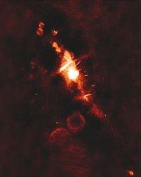 事实上,即使是在最晴朗的夜晚,面对最纯净的天空,银河系中心及其周围的密集星团仍然是不可能用肉眼直接看到的。可见光无法穿透银河系中心的星尘云和等离子层,但是电磁波却可以做到。1932年,贝尔电话实验室的物理学家Karl Jansky注意到,无论何时,只要银河平面在地平线上升起,天空中都会出现强烈的电磁噪声。在那之后,射电天文学家已经发现几种可以更清晰地看到银河系中心的方法。