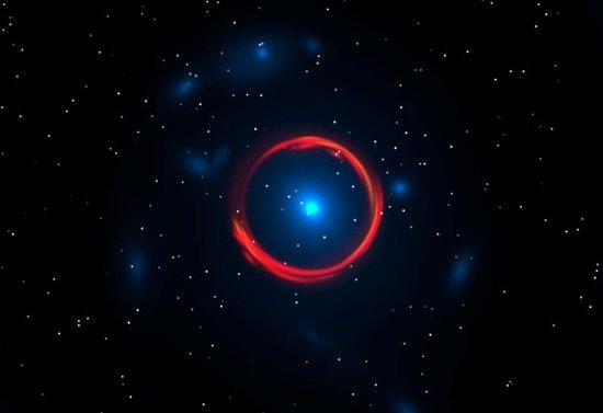 哈勃望远镜与阿塔卡玛毫米波望远镜阵的数据相结合后,科学家在引力透镜的基础上,建立起遥远背景星系的图像,背景星系还被扭曲成一个爱因斯坦环。阿塔卡玛毫米波望远镜阵目前刚落成,为目前世界上最大的陆基天文台,由66座大型碟形天线组成,坐落在智利干旱的高原沙漠中。该望远镜阵运行后,科学家立即发现了处于百亿年前的星爆星系,恒星诞生的速度极快,狭小的空间内聚集了大量的星际气体和尘埃,恒星诞生的速度是银河系这类螺旋星系的数百倍,为天文学家观测年轻宇宙的繁忙时期提供了平台。