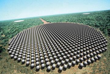 SKA全称为“一平方公里阵射电望远镜”,试图建造出世界上最强大的射电望远镜阵列。这一阵列将由上百架绵延3000公里的射电望远镜组成,犹如一个超大麦田怪圈。