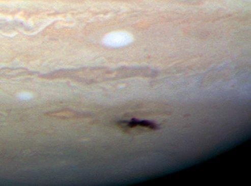 褐色的斑点就是1994年苏梅克-列维九号彗星碎片穿透木星大气层的地点。
