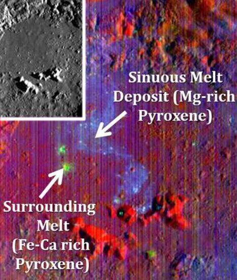 强有力的天体撞击会形成一个大坑,里面可能全是冲慧融物,冷却过将形成坚硬的岩石。研究人员先前假设,巨大的能量将彻底搅动撞击坑内的冲慧融物,从而各型岩石将被混成不能区分的整块。若真是如此,想要鉴别出具体某一矿物,恐怕不太可能。