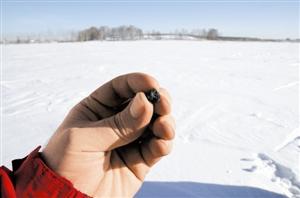 在俄罗斯车里雅宾斯克州切巴尔库利湖,疑似陨石坠落点附近的冰面被凿开。新华社