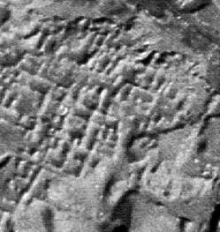 1956 年9 月29 日,日本明治大学的丰田博土观察到数个黑色物体,似乎排列成DYAX 和JWA 字形,1966 年2 月4 日,苏俄无人探测船月神九号登陆雨海后,拍到二排塔状结构物,矩离相等,依凡桑德生博士说:"它们能形成很强的日光反射,很像跑道旁的记号。"伊凡诺夫博士从其阴影长度估计,大约有15 层楼高,他说:"附近没有任何高地能使这些岩石滚落到现在位置,并且成几何形式排列。"另外,月神9 号也在风暴海边缘拍到一个神秘洞穴,月球专家威金斯博士因为自己也曾在卡西尼A 坑发现一个巨大洞穴,因此他相信这些圆洞是通往月球内部。 1966 年11 月20 日,美国轨道二号探测船在距「宁静海」46 公里的高空上,拍到数个金字塔形结构物,科学家估计高度在15 至25 公尺高,也是以几何形式排列,而且颜色比周围岩石和土壤要淡,显然不是自然物。