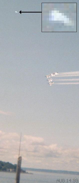 美国西雅图上空与F18大黄蜂战斗机齐飞的UFO。日期: 8月15日, 1999