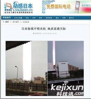 外星UFO 传送光束要降落地球?近日有日本网友在一场雷雨过后,拍到一道从地表延伸到天空的巨大粉红光束,笔直又略带粉色强光,让不少人看了啧啧称奇;网友议论纷纷地表示,该不会是飞碟要传送外星人到地球了吧!