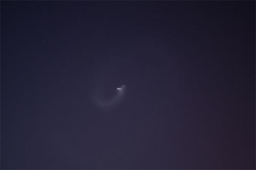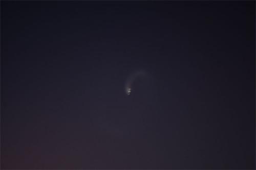 晚6时45分天空出现一簇白色云状物,以云状物为头,后面拖着弧形的“大尾巴”由东向西逆时针快速旋转前行。其形状酷似八卦图。大约一分钟时间,不明云状物消失在西部夜空中......