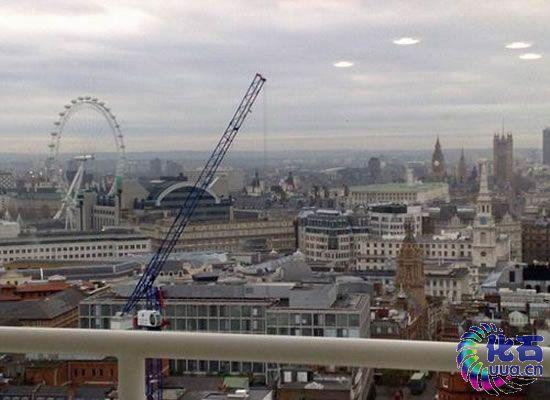 今年40岁的德里克-伯登(Derek Burden)在伦敦西区的科芬园的16层高楼处发现令人惊异的UFO景象,拍摄时间是早上8点30分。但是伯登只用手机拍摄了一张照片,这件事发生在几天前,当时他的妻子莎拉注意到厚云层的太空中隐约出现了几个特殊形状的飞行物,伯登说:“当时我正在等即将送来的一些材料,我便忙中偷闲去阳台喝杯茶,依据妻子所描述的不明飞行物,我在16层楼拍摄起来十分方便。”他还指出,这4个UFO释放的光线并不是任何典型的光线折射,并证实在拍摄时身旁并没有任何特定光源进行伪造拍摄。