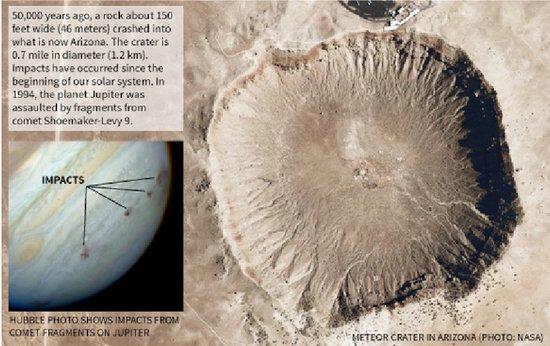 五万年前,46米直径的小行星撞击地球,留下了亚利桑那州的大型撞击坑