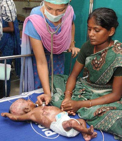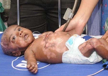 印度一3月大男婴身体4次起火(网页截图)