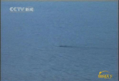 录像截图显示出水面上狭长的阴影
