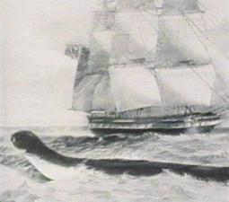追逐军舰的大海蛇 1902年10月28日上午,西非几内亚海湾风平浪静,英国货船“福特.索尔兹贝利”号稳稳地航行着。突然,一名船员看见一个庞然大物慢慢浮出海面,形状似雪茄,直径约30英尺,体长200英尺。好事的船员对它嚷道:“我们帮帮你,好吗?”可那怪物毫不领情,一声不响地沉入海中。