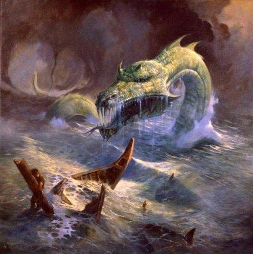 水怪想象图 古代各国神话故事中都提到过种种水怪,古往今来,数以千计的人声称亲眼目睹过水怪,并给这些水怪取了许多神奇动听的名字,如“海龙”,“海蛇”,“海长颈鹿”,及“海天鹅”等等,的确有水怪还是人们在创造新的神话呢?