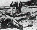 沙滩上的不明怪物尸体 1965年1月12日中午,一架新西兰军用飞机正沿着海岸线通过开巴拉湾上空。机长突然发现浅滩中有一个奇异物体,长100英尺,最大直径约15英尺,没有任何潜艇应有的突出物,这个怪物当时在40英尺深的海里朝南游动。 1966年,美国人布莱特和里奇埃为创造新纪录,决定划小船横渡大西洋。7月的一天晚上,忽然有绿色和磷光忽闪忽灭,里奇埃惊慌地抓住布莱特的肩膀,布莱特沿他手指方向望去也吓呆了:原来水里伸出一条长颈,颈上有个“牛头”,但没有角和耳朵,它鼓着双眼,射出咄咄逼人的绿光,冷冷地看着他俩,他们几乎吓晕过去了。