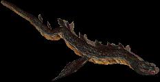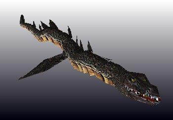 隐匿动物学家根据描述用三维技术复制出的大海蛇外貌以及游泳的方式。 |