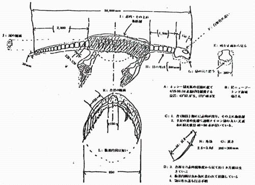 1925年被冲上加洲西海岸,鸭嘴喙,颈长达九米。