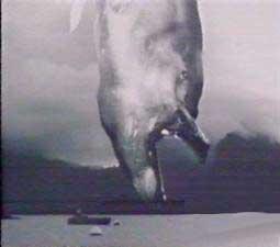 于是,从鲨鱼说又转回到爬行类动物说。证明怪兽可能是爬行类动物还有一个重要的论据,即怪兽的头部呈三角形,这是爬行类独具的特点,日本著名科学漫画家石森章太郎根据骨骼草图,画了一幅怪兽复原图,如果照此图来看,它可真像一个爬虫类动物了。