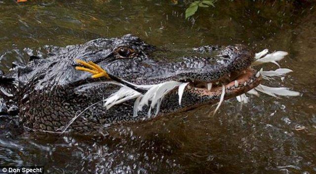 这些聪明的鳄鱼利用每年鸟类筑巢时期头部顶着几个小树枝,毫无防备的水鸟会飞过来叨取树枝,最后它们将难逃鳄鱼之口。美国田纳西大学动物学家监控观察印度鳄和短吻鳄的行为,发现它们用嘴部平衡树枝漂浮在水面引诱水鸟,使水鸟误认为树枝漂浮在水面上。